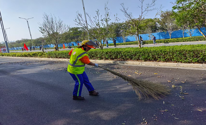 在人工清掃保潔項目中,環(huán)衛(wèi)工人采用大掃把普掃、小掃把收集的方式清理地面垃圾雜物,要求選手們在瞻前顧后,注意行人和來往車輛,把地面清理完打堆,然后集中清理,環(huán)球環(huán)衛(wèi)牛家玲隊長連續(xù)兩年參加人工普掃技能,希望她取得優(yōu)異成績。